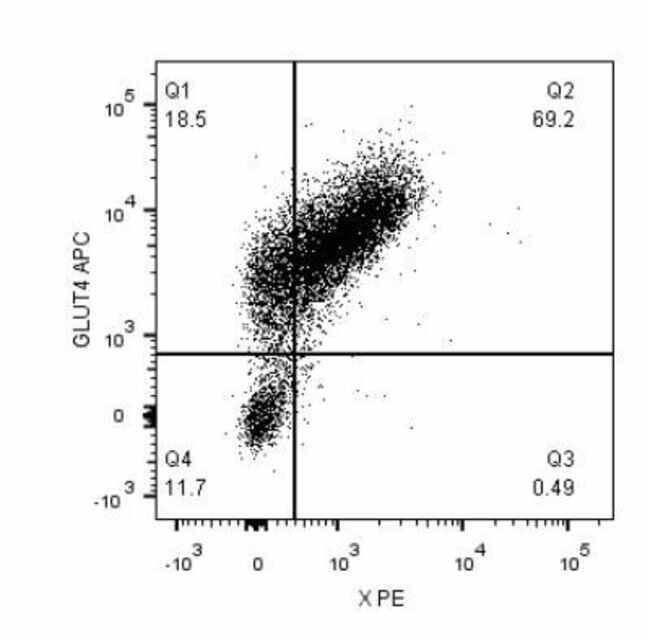 Glut4 Polyclonal specifically detects Glut4 in Human, Mouse, Rat, Plant samples. It is validated for Western Blot, Flow Cytometry, Immunohistochemistry, Immunocytochemistry/Immunofluorescence, Immunohistochemistry-Paraffin, Flow (Intracellular), Knockdown Validated.
