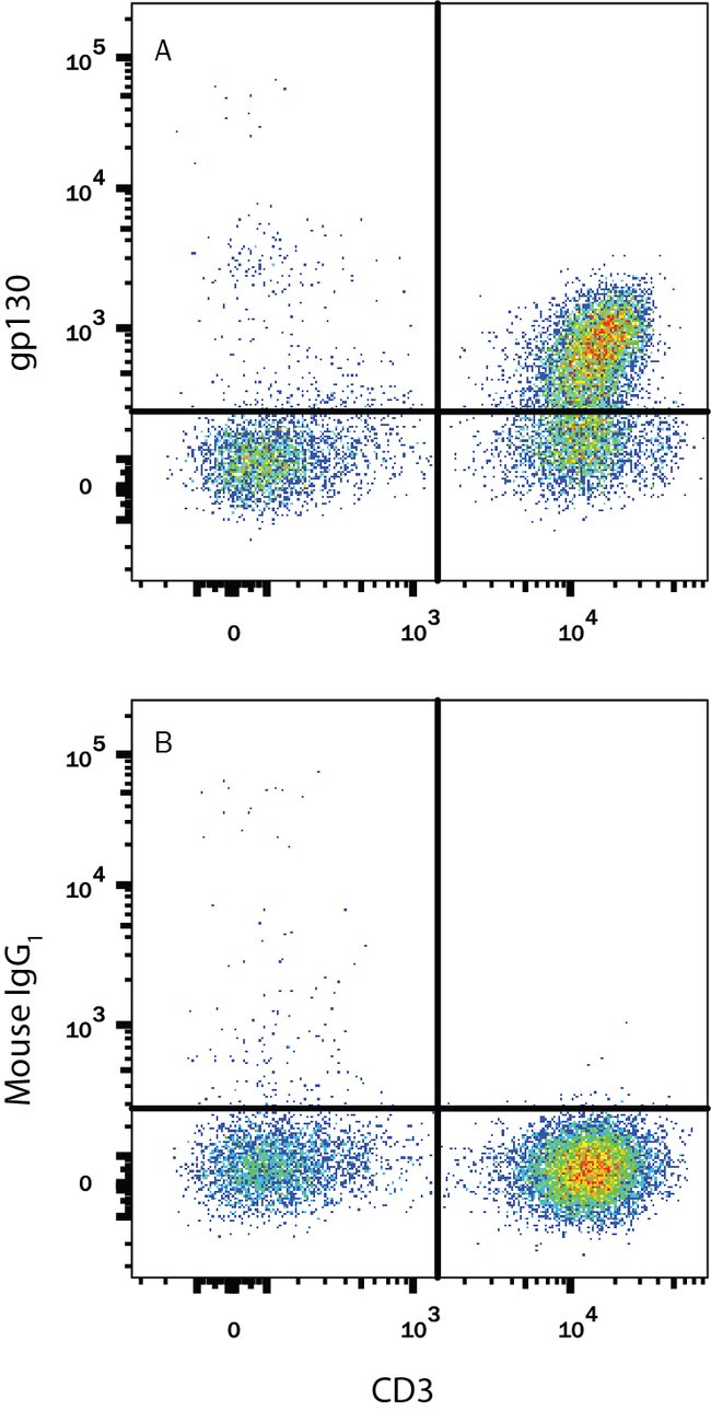 gp130/CD130 Monoclonal specifically detects gp130/CD130 in Human samples. It is validated for Flow Cytometry.
