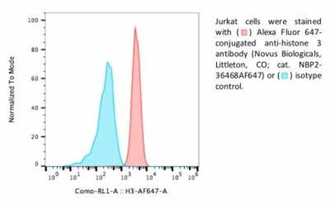 Histone H3 Monoclonal specifically detects Histone H3 in Human, Mouse, Rat samples. It is validated for Western Blot, Chromatin Immunoprecipitation, Flow Cytometry, Immunohistochemistry, Immunocytochemistry/Immunofluorescence, Immunohistochemistry-Paraffin, Flow (Intracellular), Single Cell Western.