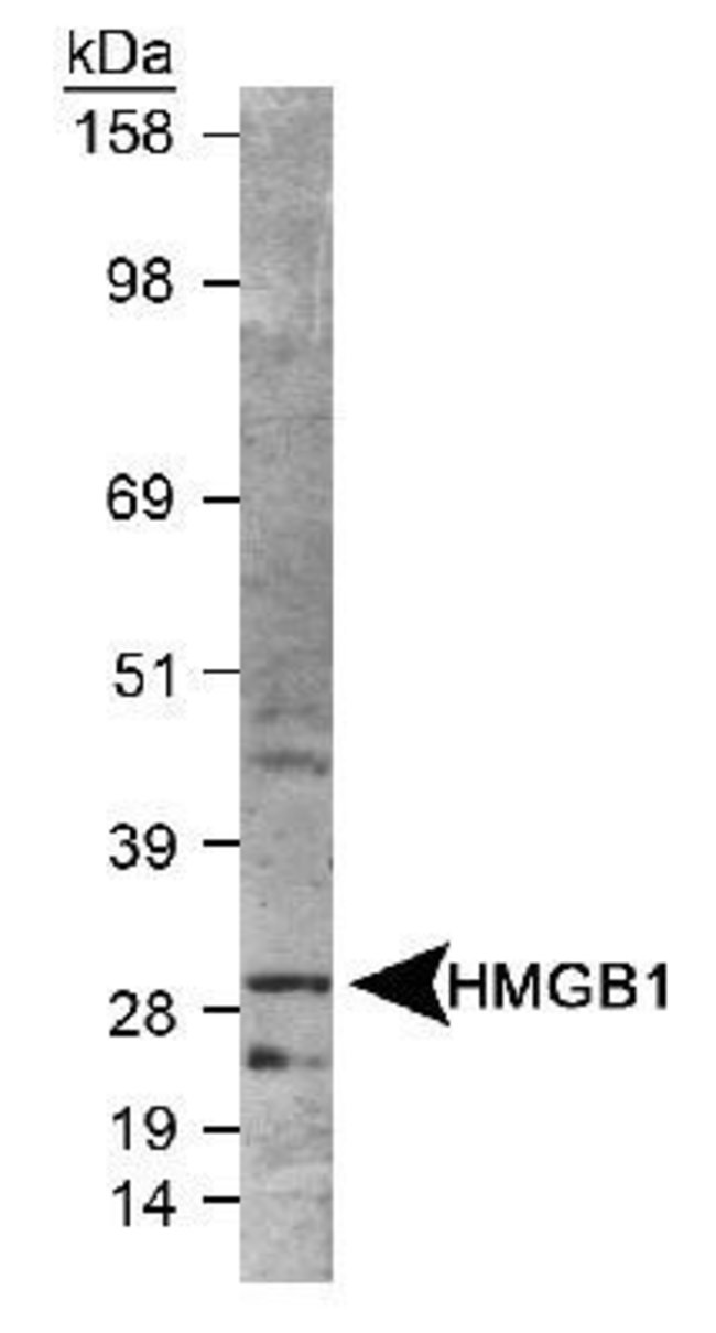 HMGB1/HMG-1 Polyclonal specifically detects HMGB1/HMG-1 in Human, Mouse, Rat, Bovine, Canine, Rabbit, Sheep samples. It is validated for Western Blot, Simple Western, Flow Cytometry, ELISA, Immunohistochemistry, Immunocytochemistry/Immunofluorescence, Immunohistochemistry-Paraffin, Flow (Intracellular), Knockdown Validated.