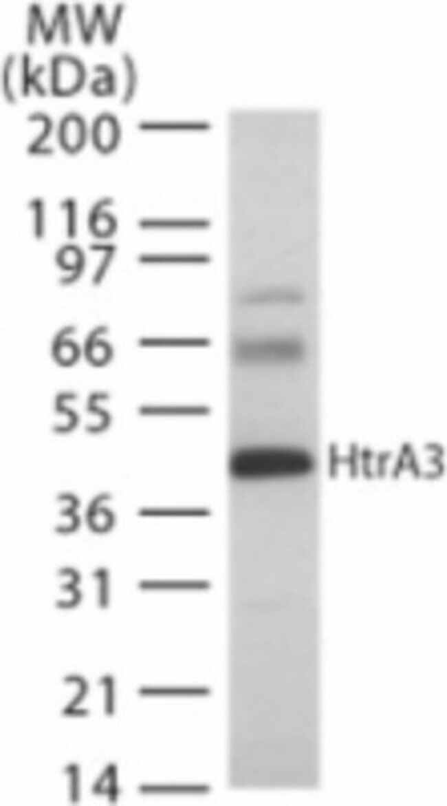anti-HtrA3, Polyclonal, Rabbit Polyclonal Antibody has been used in 1 publication, Each
