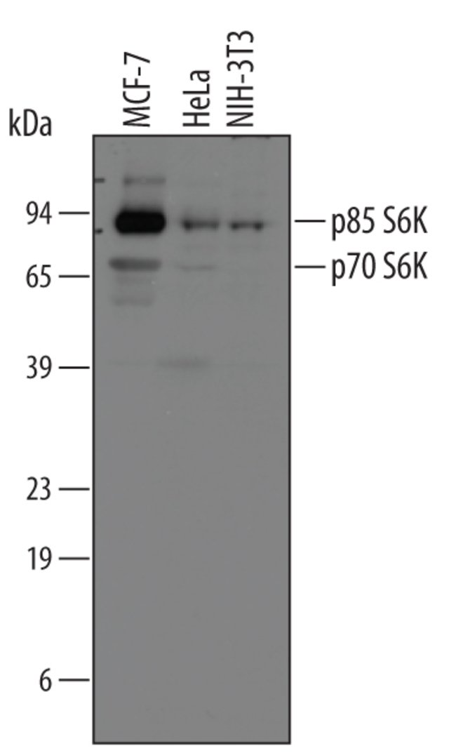 70 S6 Kinase/S6K Polyclonal specifically detects p70 S6 Kinase/S6K in Human, Mouse, Rat samples. It is validated for Western Blot, Immunohistochemistry.