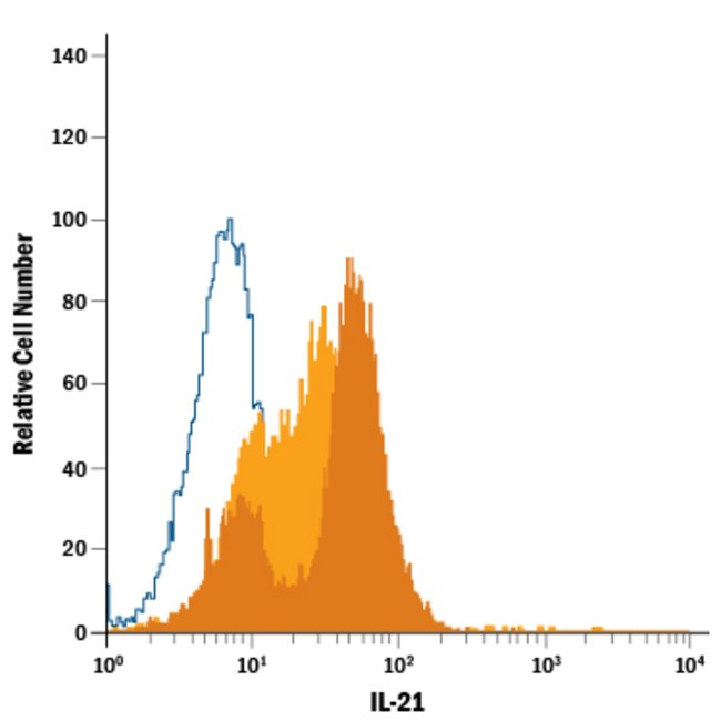 IL-21 Monoclonal specifically detects IL-21 in Mouse samples. It is validated for Intracellular Staining by Flow Cytometry.