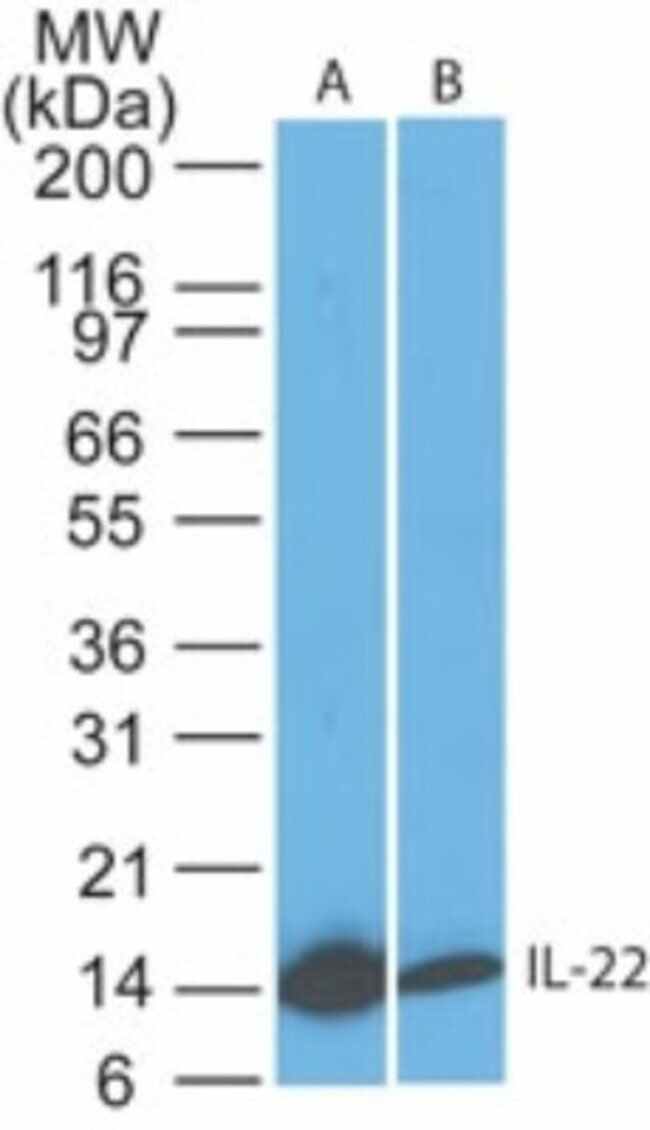 IL-22 Monoclonal specifically detects IL-22 in Human samples. It is validated for Western Blot, Immunohistochemistry, Immunohistochemistry-Paraffin.