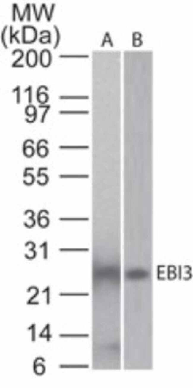 EBI3 Monoclonal specifically detects EBI3 in Mouse samples. It is validated for Western Blot, Flow Cytometry, ELISA.
