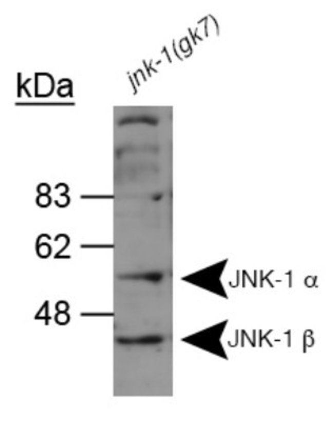 JNK1 Polyclonal specifically detects JNK1 in C. elegans, Human (Negative), Mammal (Negative), Mouse (Negative), Rat (Negative) samples. It is validated for Western Blot, ELISA, Immunohistochemistry, Immunohistochemistry-Paraffin.