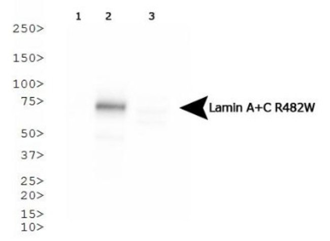 Lamin A C R482W Monoclonal specifically detects Lamin A C R482W in Human samples. It is validated for Western Blot, ELISA, Immunocytochemistry/Immunofluorescence, Immunoprecipitation.