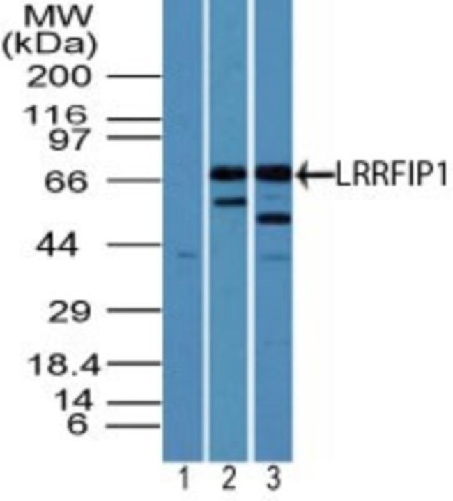 LRRFIP1 Polyclonal specifically detects LRRFIP1 in Human samples. It is validated for Western Blot.