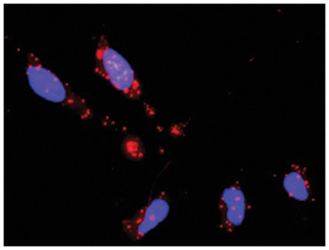 This protein protein interaction antibody pair set comes with two antibodies to detect the protein-protein interaction, one against the MAPK14 protein, and the other against the DUSP1 protein for use in in situ Proximity Ligation Assay.Host Species: Rabbit, MouseSpecies Reactivity: HuIn situ PLA