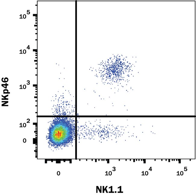NKp46/NCR1 Polyclonal specifically detects NKp46/NCR1 in Mouse samples. It is validated for Flow Cytometry.