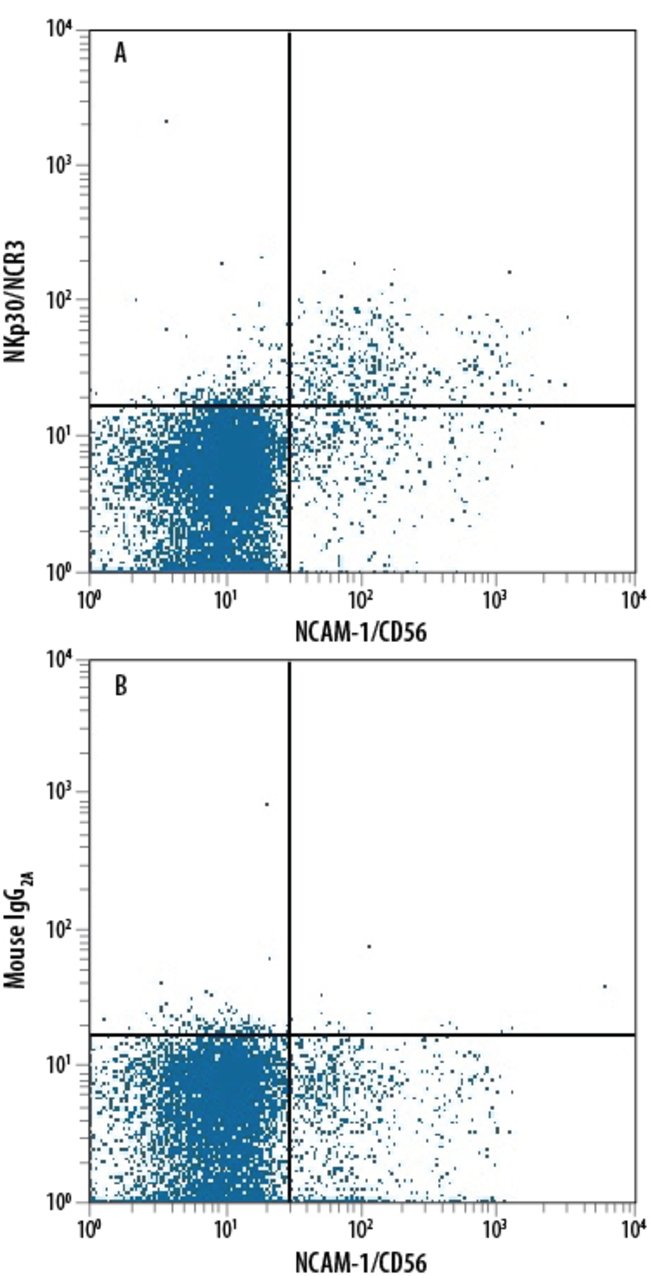 NKp30/NCR3 Monoclonal specifically detects NKp30/NCR3 in Human samples. It is validated for Flow Cytometry.