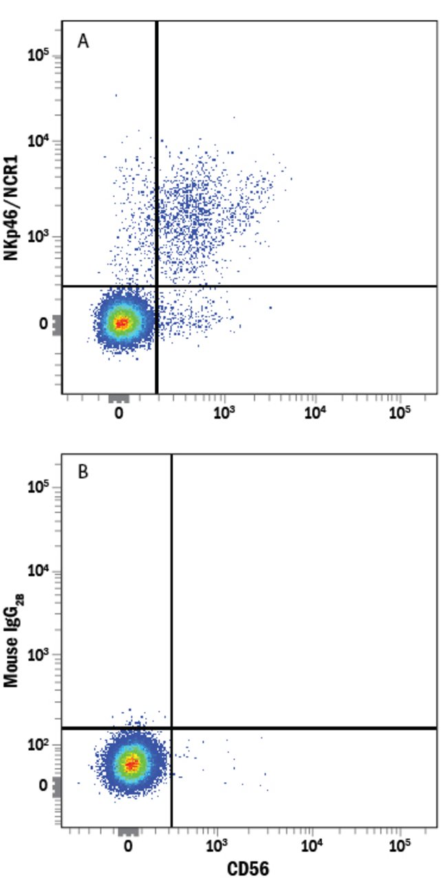 NKp46/NCR1 Monoclonal specifically detects NKp46/NCR1 in Human samples. It is validated for Flow Cytometry.