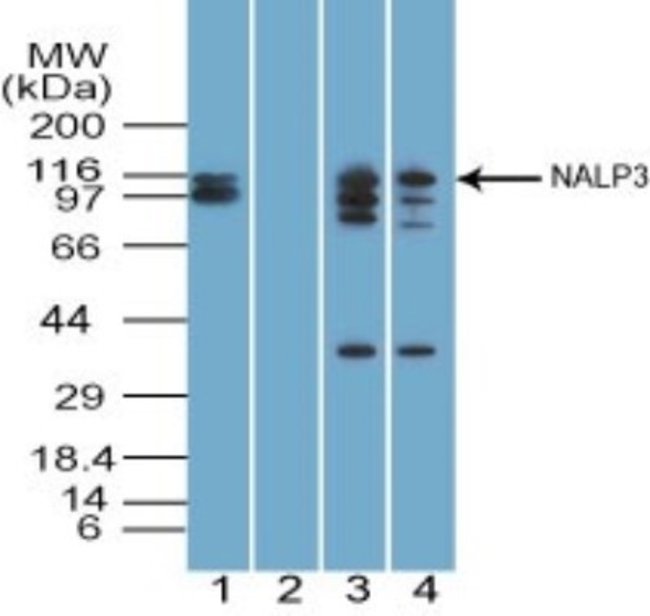 NLRP3/NALP3 Polyclonal specifically detects NLRP3/NALP3 in Human, Mouse, Rat samples. It is validated for Western Blot, Immunohistochemistry, Immunocytochemistry/Immunofluorescence, Immunoprecipitation, Immunohistochemistry-Paraffin, Immunomicroscopy, Knockdown Validated.