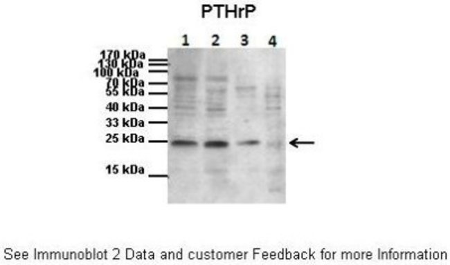 PTHLH/PTHrP Polyclonal specifically detects PTHLH/PTHrP in Human samples. It is validated for Western Blot, Immunohistochemistry, Immunohistochemistry-Paraffin.
