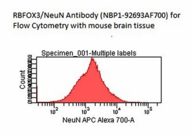 RBFOX3/NeuN Monoclonal specifically detects RBFOX3/NeuN in Human, Mouse, Rat samples. It is validated for Western Blot, Flow Cytometry, Immunohistochemistry, Immunocytochemistry/Immunofluorescence, Immunohistochemistry-Paraffin, Immunohistochemistry-Frozen, Flow (Intracellular), CyTOF-ready.