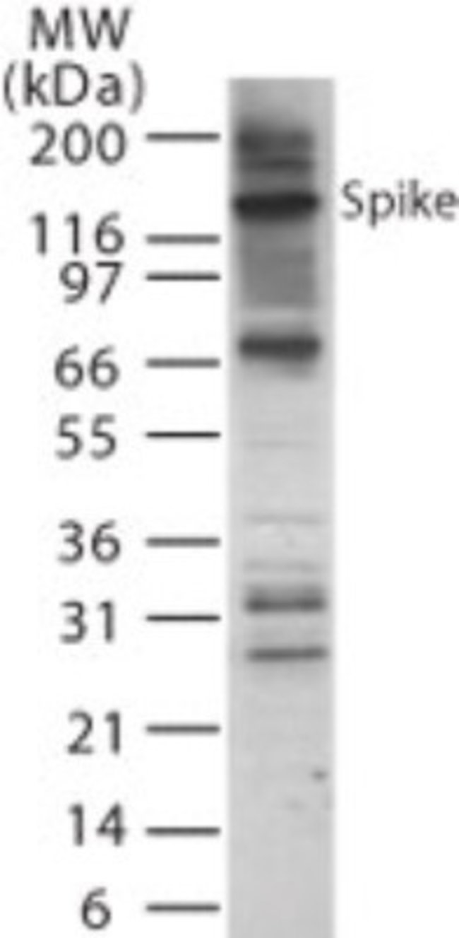 SARS Spike Protein Polyclonal specifically detects SARS Spike Protein in SARS-CoV samples. It is validated for Western Blot.