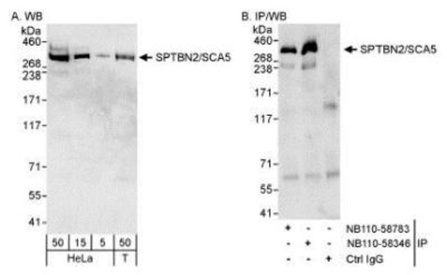 Spectrin beta 3 Polyclonal specifically detects Spectrin beta 3 in Human, Mouse samples. It is validated for Western Blot, Immunohistochemistry, Immunocytochemistry/Immunofluorescence, Immunoprecipitation, Immunohistochemistry-Paraffin.
