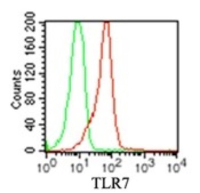 TLR7 Monoclonal specifically detects TLR7 in Human, Mouse samples. It is validated for Western Blot, Flow Cytometry, Immunohistochemistry, Immunocytochemistry/Immunofluorescence, Immunohistochemistry-Frozen, Immunohistochemistry Whole-Mount, CyTOF-ready, Knockdown Validated.