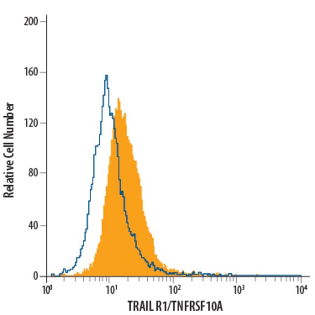TRAILR1/TNFRSF10A Monoclonal specifically detects TRAILR1/TNFRSF10A in Human samples. It is validated for Flow Cytometry.