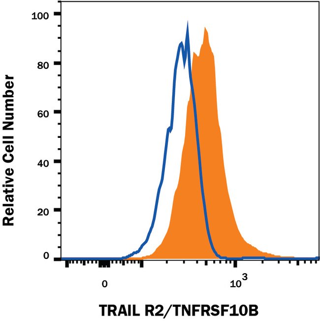 TRAILR2/TNFRSF10B Monoclonal specifically detects TRAILR2/TNFRSF10B in Human samples. It is validated for Flow Cytometry.