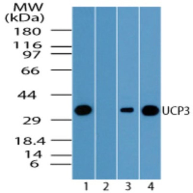 UCP3 Polyclonal specifically detects UCP3 in Human, Mouse, Rat, Primate samples. It is validated for Western Blot.