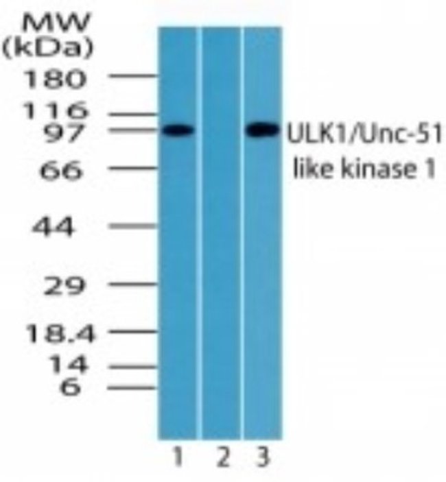 ULK1 Polyclonal specifically detects ULK1 in Human, Mouse, Monkey samples. It is validated for Western Blot, Immunohistochemistry, Immunocytochemistry/Immunofluorescence, Immunohistochemistry-Paraffin.