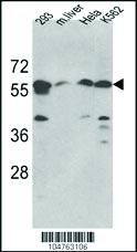 SPTLC1 N-TERM ANTIBODY 0.1MG^ This antibody is generated from rabbits immunized with a KLH conjugated synthetic peptide (10-30 aa in length) at the N-term of first 50 aa of human SPTLC1. Specificity: H, M. Concentration: 0.25 mg/ml. Size: 0.1 mg.