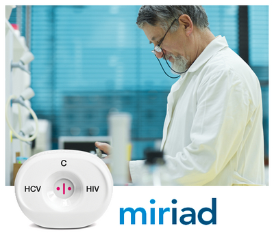 Miriad Rapid HCV/HIV Antibody Test 50 tests^ Miriad Rapid HCV/HIV Antibody Test, LAB Format, uses MedMira RVF Technology to simultaneously diagnosis hepatitis C and HIV-1/2, Built-in reagent control line, works with whole blood, serum or plasma specimens, Size: 50 tests
