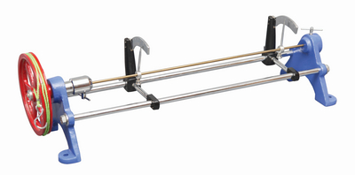 Torsion Of Metal Rod Apparatus^ Torsion Of Metal Rods Apparatus, Searles, Horizontal Pattern, Having Heavy Metal Pulley, Two Heavy Metal Brackets And Two Graduated Scales Are Mounted On The Connecting Rod & Two Pointer Can Be Clamped On The Test Rod With One Brass & One Steel Test Rod