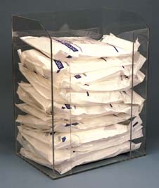 One-Compartment Apparel Dispenser^ For aprons, coveralls, frocks, and smocks. Open front. Made of durable clear 0.64cm acrylic. Mounts to wall or can be used free-standing. Flame-treated edges for smoothness. Dimensions: 39.4Wx26.7Dx61Hcm. Supplied with heavy-duty mounting bracket and support bar.