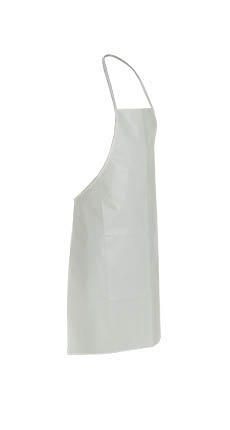 DuPont* Tychem* SL Apron^ Made of Saranex* 23-P film laminated to Tyvek* fabric. Effective protection against a range of chemicals. Abrasion-resistant, bib-style apron features bound neck and ties. Color: White. Length: 91cm.