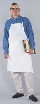 KOMFORTGUARD Apron^ Light-duty protection against dirt, grime, and certain dry particulates in non-hazardous environments. Lightweight, polyethylene-coated, spunbond polypropylene fabric. Size: 71.1x91.4cm. Color: white.