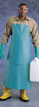 Cpp* Vinyl Aprons^ Medium To Heavy Duty Splash Protection. Economical Plain Edge And Premium Sewn Edge Style Provides Superior Flexibility And Resistant To Chemicals, Fats, Oils, And Abrasion. Style 56-102, Green Pvc, Heavy Duty, Stomach Patch, 20 Mil. Size 35"X 50"