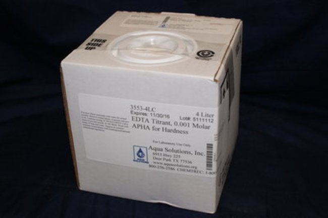 EDTA Titrant, 0.001 Molar APHA for Hardness; <0.1%; Clear odorless liquid; 4L; 95 deg.C; CAS: 6381-92-6; Store in a cool dry place