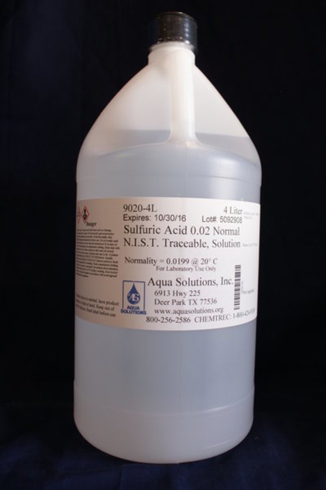 Sulfuric Acid; 0.02N; Clear, liquid; 4L; M.P. ~2 deg.C; B.P. 100 deg.C; Percent Volatile by Volume:> 99%; CAS: 7664-93-9; Use with adequate ventilation