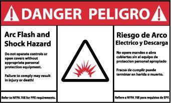 Danger, Arc Flash Hazard, Bilingual, (Graphic), 3X5, Ps Vinyl, 5/Pk^