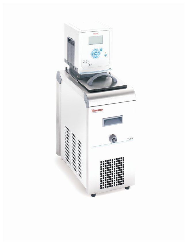 A10 refrigerated bath circulators provide efficient cooling for open and closed applications, with temperatures ranging from −10° to 100°C and 6L maximum bath volume.