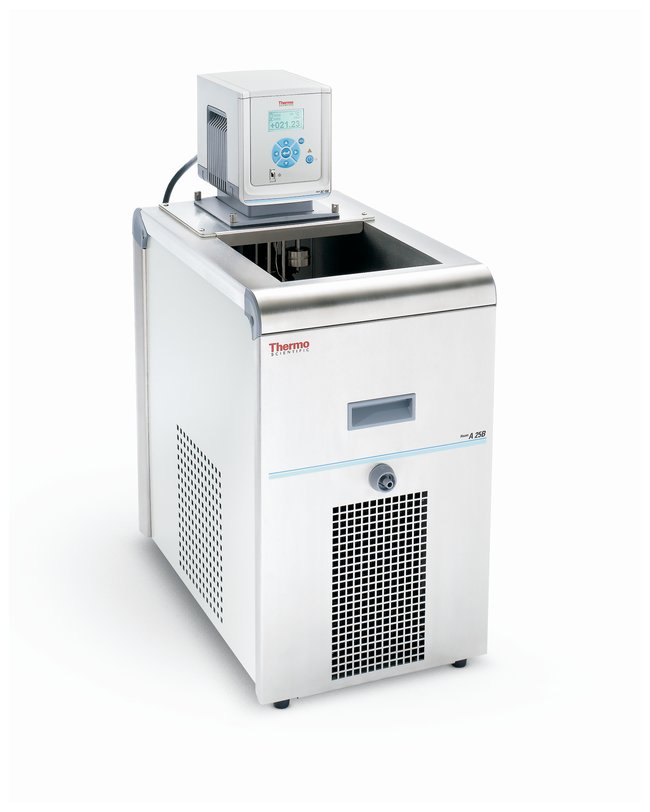 A25B refrigerated bath features a large work area, enabling high throughput and workflow efficiency, with temperatures ranging from −25° to 200°C and 21L maximum bath volume.