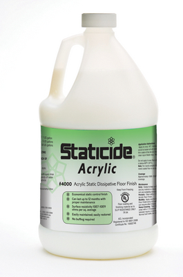 Staticide* Acrylic Static-Dissipative Floor Finish^ Used for computer rooms and high-tech static-sensitive environments. High gloss, slip- and detergent-resistant. Non-migratory acrylic copolymer is high gloss, slip- and detergent-resistant. Meets MIL-B-81705B, NFPA 56A standards. 3.78L.
