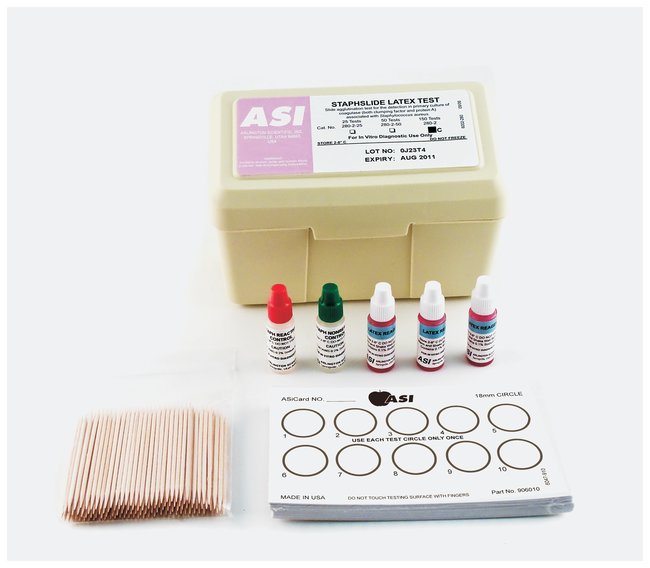 Staph Test Kit, Detects coagulase (both clumping factor and Protein A) associated with Staphylococcus aureas, Case of 50