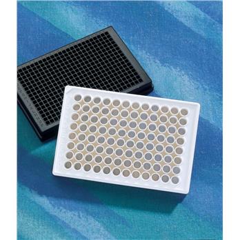 Bottoms are 60% thinner than conventional polystyrene microplates, resulting in lower background fluorescence and enabling readings down to 340 nm. Opaque walls prevent well-to-well cross-talk. Optically clear flat bottom permits direct microscopic viewing.Crystal-grade virgin polystyreneSterilized by gamma irradiationNonpyrogenicNon-treated polystyrene, standard tissue culture (TC), and Corning® Primaria™ surface treatments availableConvenient, peel-open medical-style packaging for individual product presentationIndividual and Ready-Stack (RS) trays are PET (Code 1) and recyclableFalcon 96, 384, and 1536 well microplates are compatible with automation systems and meet standard ANSI/SBS footprint dimensions for microplate