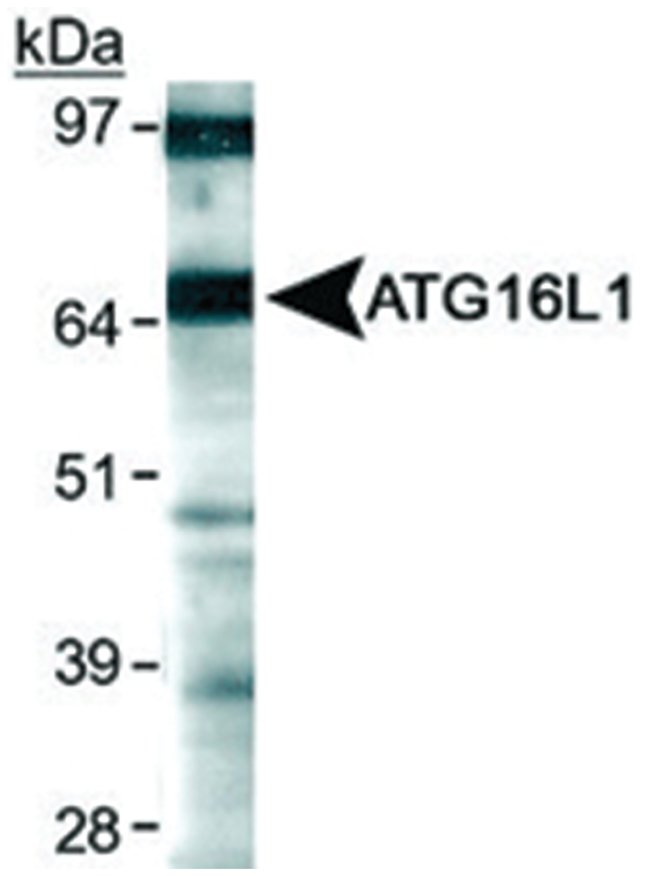 Rabbit polyclonal antibody raised against synthetic peptide of ATG16L1.