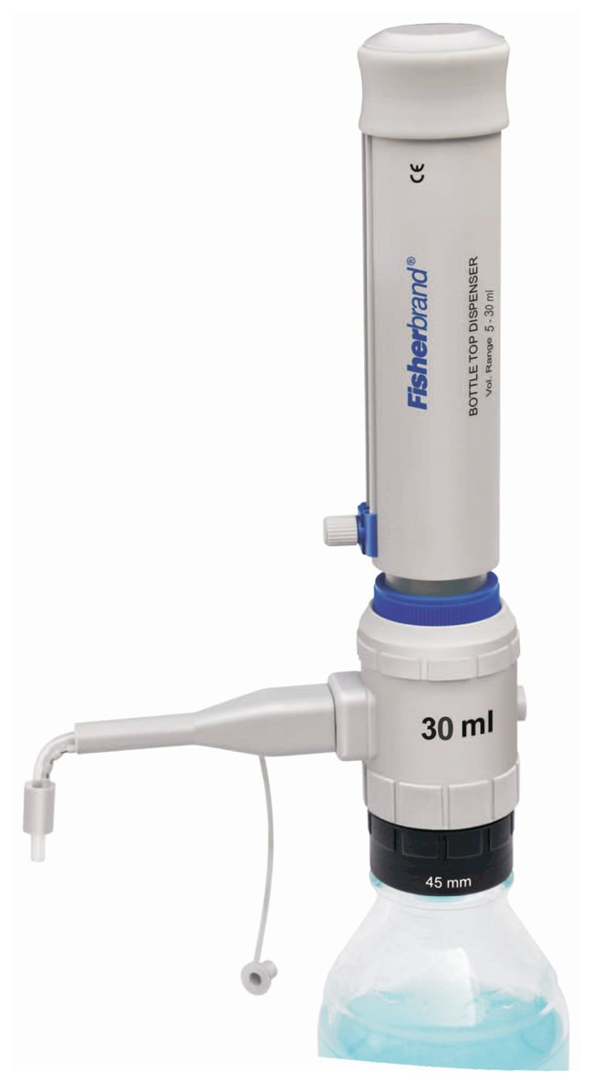 Provides smooth, effortless dispensingWetted parts are PTFE, FEP and borosilicate glass (allows instrument to be used with a wide variety of chemicals)7 volume ranges to choose fromBubble-free dispensingEffortless plunger movementDisassembles for easy cleaning and servicingAutoclavable at 121°C, 15 psi for 10 to 15 minutesEach bottle top dispenser includes one 28mm, 32mm, 36mm, 40mm, 45mm bottle neck adaptor Component Piston: PTFECylinder: GlassVolume Adjustment Knob: Screw TypeValve Housing: PTFEValve Assembly: Glass Ball & SealDischarge Assembly: PTFEDelivery Tube: FEPInlet Tube: FEP, 13 in. (with extension)Calibration: Individually calibrated and certified (in-lab by user is also possible)Accuracy & Reproducibility: In accordance with ISO 8655 standardsCompability: Excellent with most reagentsWarranty and ServicesOne year free replacement warranty against any manufacturing defects. The period of one year starts from the invoice date of Fisher Scientific to its customer.