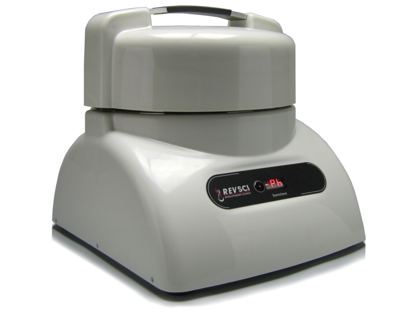 Saniclave Steam Autoclave^ Saniclave Steam Autoclave, Capacity: 8L, Net Weight: 5.4kg, Power requirements: 120 VAC, 60 Hz, 1250 W, External: 13 tall x 12.5 wide x 15 deep (inch), Internal: 9 diameter x 8 tall(inch), Safety approvals: IEC compliant, CE marked, FDA approved top loading