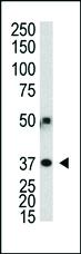 AUTOPHAGY APG3L ANTIBODY (N-TE^ Purified Rabbit Polyclonal Antibody (Pab). This antibody is generated from rabbits immunized with a KLH conjugated synthetic peptide at the N-term of human APG3L. Specificity: H. Concentration: 0.25 mg/ml. Size: 0.1 mg.