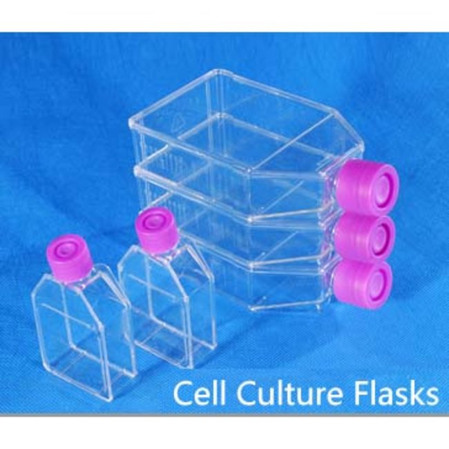 Cell Culture Flasks, PS Material, 75 cm2 Growth Area, 270ml Volume, 158x88x35mm Dimensions, sterilized, 5 pieces per bag