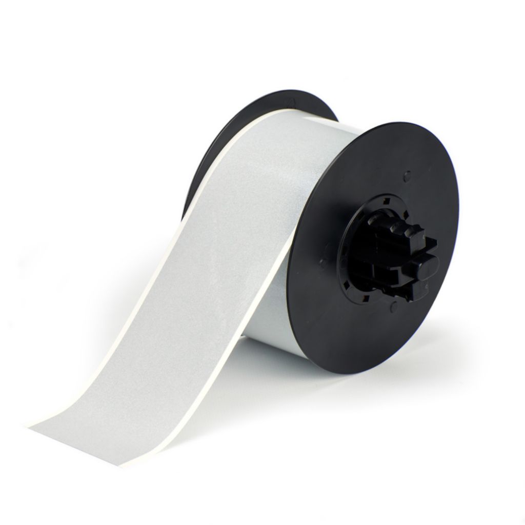 B30 B565 Silver 2.25Inx100Ft^ Metallized polyester film with a permanent acrylic pressure sensitive adhesive and a topcoat specifically formulated for thermal transfer printing designed for applications like identification labels or rating and serial plates that require nameplate-like quality.
