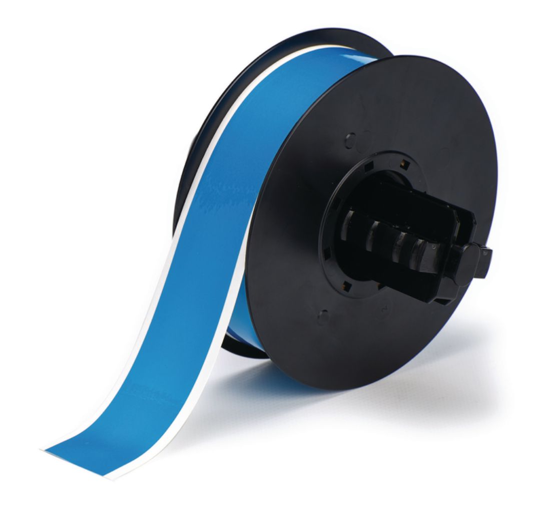 Tape^ Tape, B30 Series Low-Halogen Polyester Label Supply, Permanent Acrylic Adhesive, Material Type: Polyester, Color: Light Blue, Dimension: 1.125Inchx 100Feet, Application: Facility & Safety Identification; Labelling Of Stainless Steel Pipes And Surface