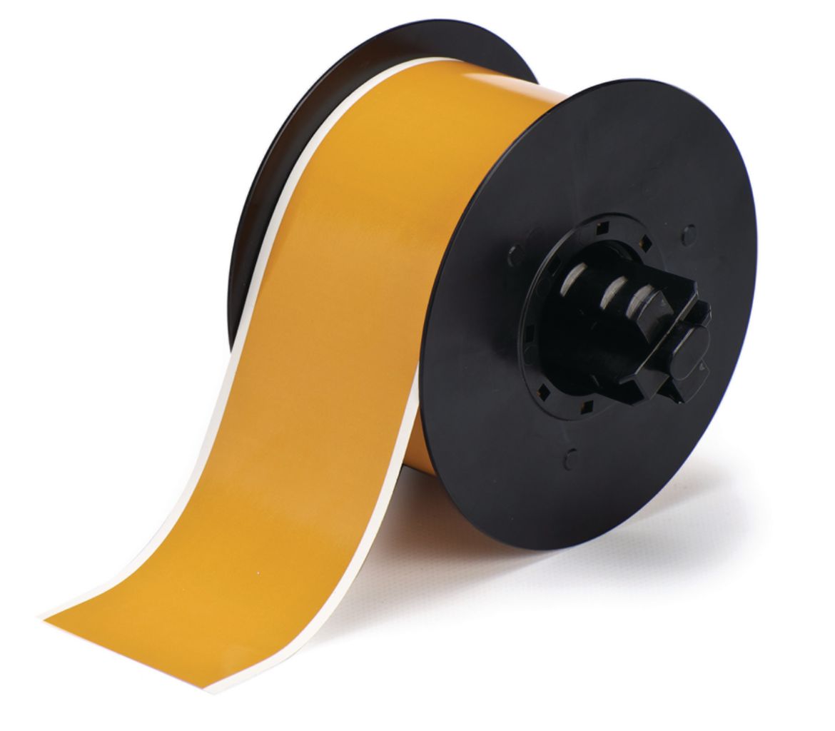 Tape^ Tape, B30 Series Low-Halogen Polyester Label Supply, Permanent Acrylic Adhesive, Material Type: Polyester, Fit, Color: Ochre, Dimension: 2.25Inchx 100Feet, Application: Facility & Safety Identification; Labelling Of Stainless Steel Pipes And Surface