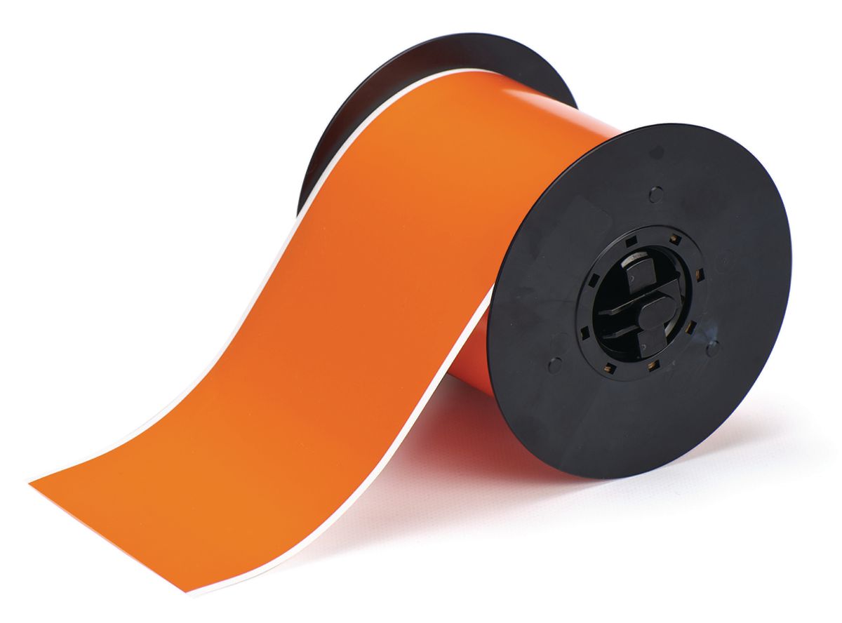 B30 B569 Orange 4Inx100Ft^ Polyester label stock with permanent pressure sensitive adhesive designed for use on stainless steel pipes in harsh environments such as the Pulp and Paper Industry. Service Temperature: -40F to 212F (-40C to 100C) Average Outdoor Durability: 3 to 5 years